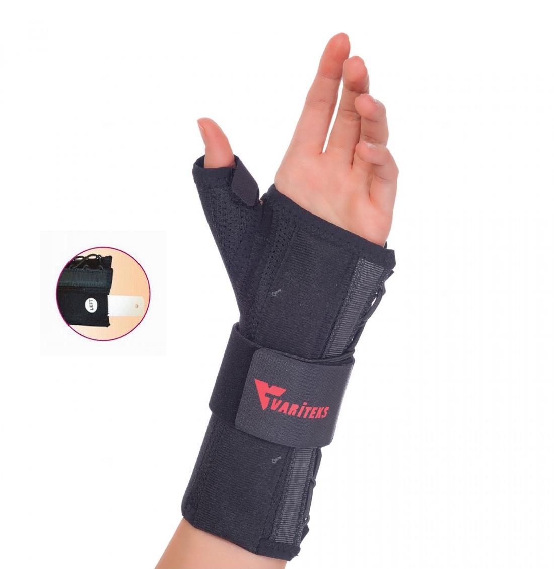 - Підсилений двома алюмінієвими опорами для великого пальця та зап'ястя. Підтримує зап'ястя в випадку теносиновитів, тунельного синдрому зап'ястя.