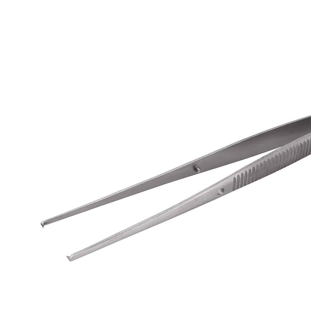 Пинцет хирургический по Semkin, со шпилькой используется для захватывания краев раны и более крепкого удерживания плотных тканей, главным образом кожи. Функциональность пинцета при оперативных вмешательствах обеспечивает его специальное строение: одна бранша имеет на конце два зубца, а вторая – один зубец, совмещающийся при смыкании пинцета с впадиной между зубцами первой бранши.