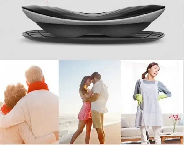Дошка-підставка для масажера, яка входить до комплекту, може використовуватися з двох сторін: а) для помірного розтягування; б) для посиленого розтягування (збільшення висоти масажера). Цей масажер заспокоює біль у попереку.