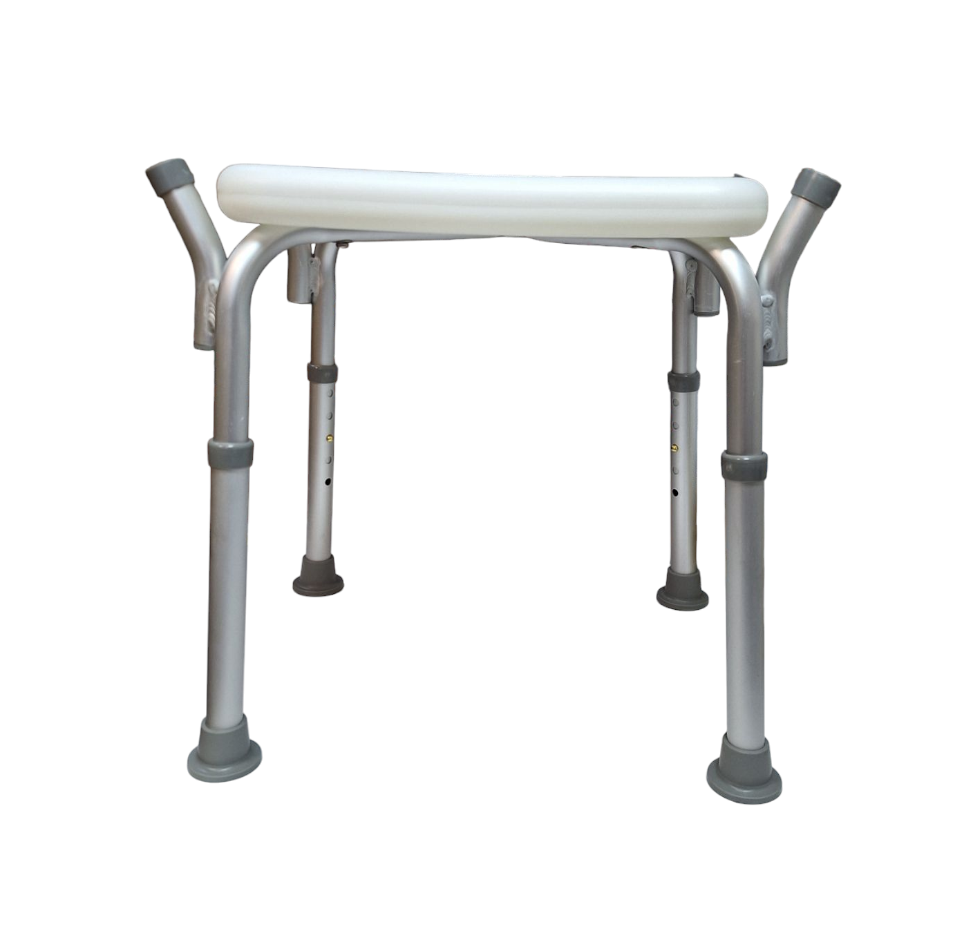 Безпечне використання завдяки стійкій конструкції.Матеріал: Алюмінієва труба – не піддається корозії та має тривалий термін експлуатації.Регульована висота сидіння – від 41 до 51 см, що дозволяє налаштувати стілець під індивідуальні потреби.Зручні гумові тримачі для рук – забезпечують додаткову підтримку та комфорт. Стабільна конструкція – міцні ніжки з антиковзкими насадками для безпеки на вологій поверхні.Компактні розміри – підходить навіть для невеликих душових.Легка вага – що забезпечує зручність у транспортуванні та зберіганні.